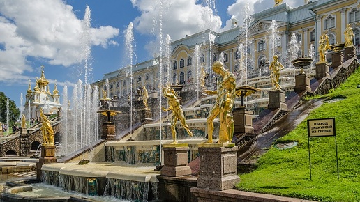 Петергоф — дворцово-парковый ансамбль, расположенный на южном берегу Финского залива, в 29 км от Санкт-Петербурга. Это бывшая летняя резиденция Петра I. Пётр I решил заложить на берегу Финского залива летнюю резиденцию, вдохновляясь Версалем. В 1711 году начались первые строительные работы. 15 августа 1723 года состоялось торжественное открытие Петергофа (в переводе с немецкого — «Петров двор»). К этому времени были построены дворцы, распланирован Нижний парк, прорыт Морской канал, запущена часть фонтанов...