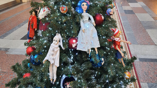 Из-за известных всем событий думала, что в этом году выставка не состоится. Однако ГУМ объявил анонс ежегодной выставки новогодних ёлок, и я поспешила в магазин полюбоваться чудесами дизайнерского искусства. Ёлка от театра кукол им.Образцова. Ёлка декорирована самыми настоящими куклами, которые могли бы принимать участие в спектаклях. Узнаёте этого персонажа? Это конферансье из "Необыкновенного концерта" -- спектакля театра кукол им.Образцова, которые видел наверное каждый житель СССР, у кого имелся телевизор...