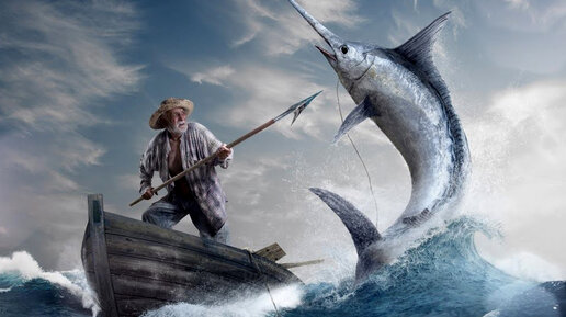 СТАРИК И МОРЕ. Э.ХЕМИНГУЭЙ. Старик Сантьяго живёт в маленьком рыбачьем посёлке на Кубе и рыбачит совсем один. Последний раз он провёл в море 84 дня, но не поймал ничего. Раньше с ним рыбачил мальчик Манолин, который очень помогал старику, но родители мальчика решили, что Сантьяго — невезучий, и велели сыну ходить в море на другой лодке. Старик научил Манолина рыбачить, и мальчик любит Сантьяго, хочет ему помочь. Он покупает ему сардины для наживки, приносит еду в его хижину. Старик уже давно смирился со своей нищетой. Он был слишком простодушен, чтобы задуматься о том, когда пришло к нему смирение...