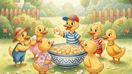Каждое утро хозяйка выносила утятам полную тарелку рубленых яиц. Она ставила тарелку возле куста, а сама уходила. Как только утята подбегали к тарелке, вдруг из сада вылетала большая стрекоза и начинала кружиться над ними. Она так страшно стрекотала, что перепуганные утята убегали и прятались в траве. Они боялись, что стрекоза их всех перекусает. А злая стрекоза садилась на тарелку, пробовала еду и потом улетала. После этого утята уже целый день не подходили к тарелке. Они боялись, что стрекоза прилетит опять...