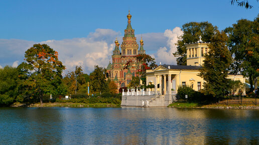 Петергофский собор святых апостолов Петра и Павла расположен на северном берегу Ольгина пруда, недалеко от дворцово-паркового ансамбля. Удивительный по своей красоте огромный собор виден за многие километры от города и по праву считается последним великим храмом Российской империи. В Петергофе к концу ХIХ столетия сложилась парадоксальная ситуация: при достаточном количестве церквей - 13 храмов на 11 тысяч жителей - простому народу некуда было пойти на богослужение, особенно в праздничные дни...