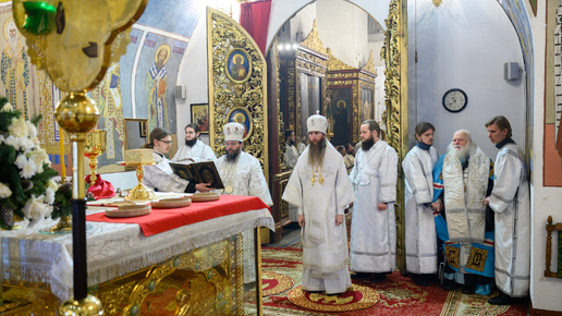 Его Высокопреосвященству сослужили: епископ Великолукский и Невельский Варнава, секретарь Псковского епархиального управления протоиерей Андрей Вахрушев, наместник Свято-Благовещенской Никандровой пустыни архимандрит Спиридон (Иващенко), благочинный храмов города Пскова протоиерей Андрей Большанин, настоятель Свято-Троицкого...
