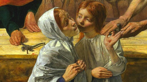 В своих ранних работах Прерафаэлиты стремились совместить природную достоверность повседневности с мистическим символизмом изображаемого. Почему этот симбиоз возмущал викторианскую общественность? И критики, и публика воспринимали практически все ранние работы Прерафаэлитов "в штыки", но картина "Христос в доме своих родителей" подверглась особому остракизму. Работа была представлена на выставке Королевской Академии. Она не имела названия, но сопровождалась цитатой из Библии: «Ему скажут: отчего же на руках у тебя рубцы? И он ответит: от того, что меня били в доме любящих меня» (Зах...