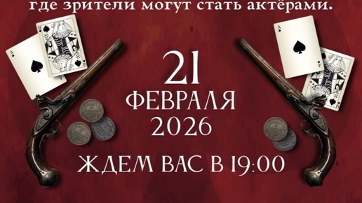 С. Пушкина "Пиковая Дама"в кафе «АнтрактЪ» 🎭 🕯 Зрителей ждёт встреча с напряженным сюжетом, страстью и предательством, а также таинственная атмосфера, которая создаст незабываемое настроение. В постановке примут участие актеры...