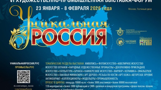 Культура: С 23 января по 8 февраля в московском Гостином дворе пройдет 6-я художественно-промышленная выставка-форум «Уникальная Россия