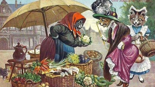 Человекообразные коты немецкого художника Артура Тиле(1860-1936)