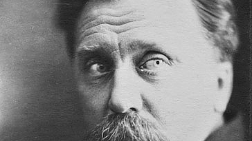 Это товарищ Н. П. Брюханов. Смотрит испуганно на свой портрет в исполнении тов. Сталина.