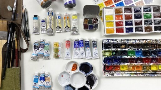 Дарья Куцаева, ведущий преподаватель школы Художник Онлайн, расскажет о том, как собрать минимальный набор акварельных красок для начинающего художника и докажет, что на первых этапах вовсе необязательно иметь большую палитру. Используя всего 11 цветов, мы сделаем выкраску акварели «Невская палитра» от желтых до темных серо-коричневых оттенков и выясним, какие цвета для этого понадобятся. Начнем с желтого. Желательно иметь несколько его оттенков. Самыми универсальными будут охра и неаполитанская желтая...
