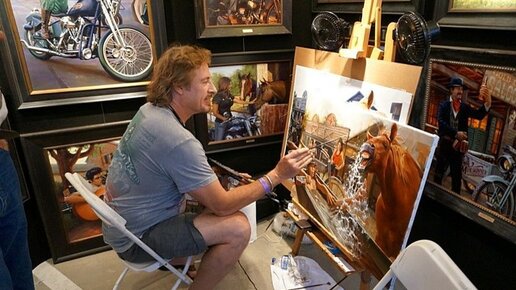 Приветствую вас! Дэвид Уль - американский художник, специализирующийся на написании маслом и известный своей коллекцией Women of Harley-Davidson. Многие из его картин отмечены духом 30-40-х годов прошлого века, но есть и вневременные. Стиль Уля идеально подошёл для того, чтобы передать глубокие эмоции, которые вызывает Harley-Davidson у его поклонников, и не только их. С 1996 года Уль увлёкся живописью масляными красками и к 1998 ему удалось создать совершенно новое направление в мире искусства — Harley-Davidson Fine Art...