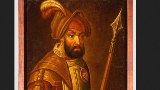 Я пишу о людях, чей образ отражен в искусстве. Посмотрите, каким изобразил знаменитого атамана Ермака Тимофеевича неизвестный художник XVIII века. Перед нами чернобородый мужчина в шляпе с пером, в латах и с копьем в руке. Впечатляет выражение лица этого человека - какое-то злобное, с остановившимся безумным взглядом. Впрочем, я думаю, что нарисованный образ не соответствует точно истинной внешности Ермака. Как он выглядел на самом деле, мы можем только представить, следуя описаниям современников...