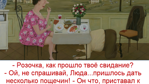 Приветствую на страницах "Позитива красок", уважаемые читатели! Начиная сегодняшнюю любимую рубрику с одной замечательной шутки про свидание, мне вспомнилась картина не менее любимого мной Валентина Алексеевича Губарева. Когда я впервые ее увидела, то название не сразу поняла. Возникли трудности перевода (название было на французском языке). Но вы, мои дорогие проницательные читатели подсказали, как правильно, и сразу всё стало на свои места. У этой картины, открывающей "Пятничный позитив" сегодня потрясающее название "Вилка упала три раза"...