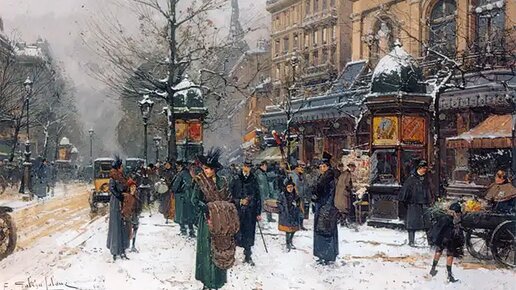 Французский импрессионист с итальянскими корнями Эжен Гальен-Лалу родился в 1854 году в Париже. Будучи старшим из восьми детей, после ранней кончины отца он вынужден был пойти работать помощником нотариуса, а к 16 годам ушёл добровольцем на войну. Лишь спустя 4 года Эжен возвращается к мирной жизни. Так что его первая картина увидела свет только когда Эжену исполнилось 22 года. Шумная сутолока парижских улиц стала главной темой творчества художника. Реалистическое и точное воспроизведение деталей и символов той эпохи делают полотна Эжена особенно ценными ещё и с исторической точки зрения...