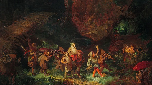 Мено Мюлиг (Meno Mühlig) (1823-1873) «Охотничья процессия гномов», 1873 год. Немецкий художник-живописец. Доска, масло. Размеры: 24х32,5 см. Частное собрание. Добрый день, дорогие читатели! Предисловие автора 17 сентября – Мeждунapoдный дeнь гнoмa. Гномы – существа загадочные. Эти маленькие человечки, обитатели лесов и подземелий, встречается в сказаниях, мифах и легендах многих народов мира. Гномы известны своей мудростью, трудолюбием и тайными знаниями, такими как умение обращаться с драгоценными металлами и камнями...
