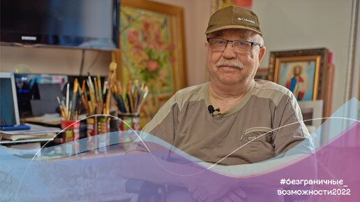 Инвалид Колясочник. Художник Константин Юрин. Со своими картинами.
