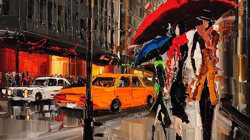 Изысканный французский шик промокшего под дождем Парижа, «кружевная» архитектура городских зданий и много-много краски – вот основные ингредиенты чарующих картин знаменитого художника Кэла Гаджума (Kal Gajoum).
