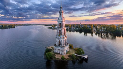Краткое описание Хотя Калязин и не входит в официальный список городов Золотого кольца России, но вполне заслуживает там находиться. Причиной тому богатейшая история, множество архитектурных памятников и музеев, а также очаровывающая своей красотой природа. Калязин — город с интересной судьбой, ведь больше восьмидесяти лет немалая его часть ушла под воду из-за создания водохранилища. Именно тогда и образовалась самая известная достопримечательность Калязина — колокольня на островке посреди водоема...