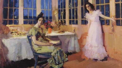 Творчество русского живописца Константина Коровина проникнуто созерцанием красоты окружаещего мира. Его талант яркий и жизнеутверждающий. Редкостный колористический дар художника с особой полнотой раскрылся в крымских пейзажах и натюрмортах 1910-х годов. Сегодня мы с вами познакомимся с тремя работами К. А. Коровина: «Гурзуф», «Натюрморт. Розы» и «Терраса». Картина «Гурзуф» поступила в Таганрогскую картинную галерею в 1979 году от О. Ф. Виноградовой, Москва. Слева внизу подпись и дата: «Конст. Коровинъ, 1915 г...