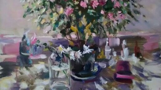 Андрей Королев член Творческого Союза Художников России, москвич, в возрасте творческой зрелости (58 лет) Недавно он опубликовал ВКонтакте (id276715468) свой натюрморт 2017 года, который произвел на меня необыкновенное впечатление. Вот даже не могу сказать, что произвело такое сильное впечатление. Нестандартная композиция ... вот это сочетание красивого, мощного, очень симметричного букета и несколько хиленьких цветочков в бутылочке ... или цветовое сочетание от фиолетового и темно синего до розового...