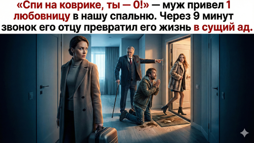 «Спи на коврике, ты — 0!» — муж привел 1 любовницу в нашу спальню. Через 9 минут 1 звонок его отцу превратил его жизнь в сущий ад. Ликую