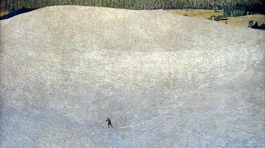 Одна из самых известных картин швейцарского художника Куно Амье «Снежный пейзаж» («Глубокая зима»). Те, кто не видел полотно в реальности в музее д'Орсэ, могут подумать, что оно маленькое, как картины малых голландцев. Но обратите внимание на размер картины: 178x235см! Это более 4 квадратных метров и почти все пространство занято снегом! Снега очень много и он удивляет количеством оттенков белого, голубого, бежевого, серого. Эти деликатные цветовые переходы, пятна и мазки формируют рельеф, фактуру снежной поверхности и взгляд скользит по полотну, отдыхая, настраивая на спокойное созерцание...