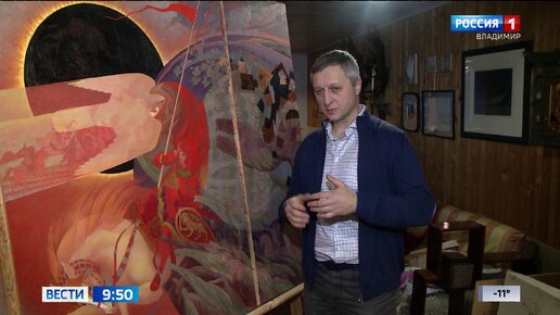 Их общий вес 60 килограммов! На такое масштабное произведение мстёрского художника Дениса Молодкина вдохновило сказание о походе русского князя Игоря на половцев. Какие пигменты для этого использует художник и что за цвета олицетворяют Русь и самого князя Игоря? Узнала Вера Куликова. Здесь это часть Руси. Это русская часть там половецкая. Два противоборствующие. Это русские города они переходят в такие деревья. Сказание о походе русского князя Игоря на половцев - в красках. Это будет триптих, рассказывает Денис Молодкин...