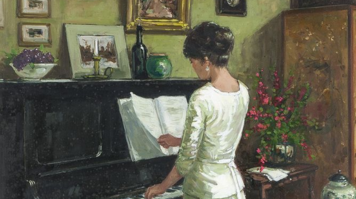 Когда она играла, звучала прекрасная и всепоглощающая музыка, каждой высокой нотой поднимая бледную грудь под белым кружевом плотного платья. Её спокойное лицо не двинуло ни одной мышцей. Это было майское сине-туманное утро. В домике, тихо дышащим зеленой долиной далеко загородом. Туман аккуратно водил серыми пальцами по желтеющему от старости окну, к которому своими цветами, похожими на свечи, склонился каштан, словно пытался хотя бы одним глазком взглянуть на её игру сквозь задёрнутые синие гардины...