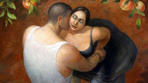Эту картину в интернете публикуют под разными названиями: «Двое», «Свидание», «Мужчина и женщина», но авторское название – «Сад». Это название отсылает нас к библейскому сюжету, к чему-то самому первому, изначальному...