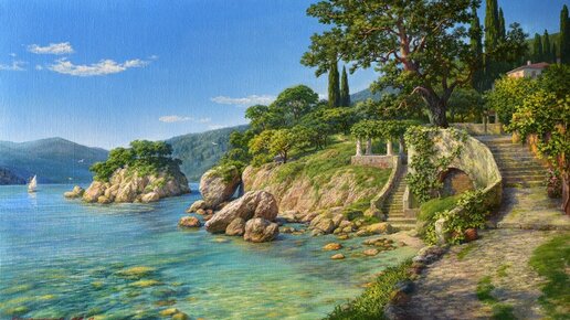 Продолжу знакомить с творчеством художника Михаила Сатарова. Художник работает в следующих жанрах и темах: "Старая Москва", "Венеция", "Марины", "Портреты", "Натюрморты", "Пейзаж" и "Фэнтэзи". В пятой части у нас будут "Марины". Для тех, кто не в курсе, что это такое поясню, что это особый вид пейзажа, картина, на которых изображаются морские виды. 1. "Солнечная Ривьера". 2. "Замок у моря". 3. "Ночь на море". 4. "Лазурный берег". 5. "Вечер на море (версия 2)". 6. "Крымский вечер". 7. "Тихое утро (версия 2)"...