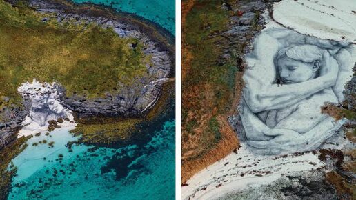 Объятия на песке: художник создал картину из песка на побережье Норвегии