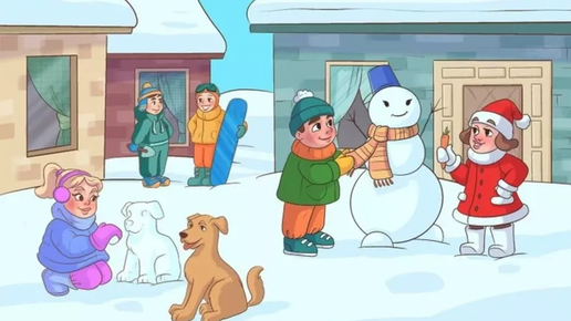 Визуальные головоломки являются не только увлекательным занятием, но и эффективным инструментом для развития когнитивных способностей, в частности, внимательности и критического мышления. Предлагаем вашему вниманию зимнюю иллюстрацию, созданную художником. На изображении представлены дети, играющие во дворе. Ваша задача — обнаружить две логические ошибки, присутствующие на данной картине...