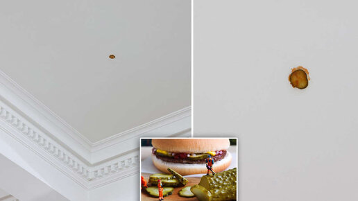 Австралийский художник Мэтью Гриффин представил работу под названием «Огурец» — в честь ингредиента, который он вытащил из чизбургера McDonald’s и бросил в белый потолок местной галереи. Бросок был таким удачным, что огурец прилип и с тех пор не падал на пол.