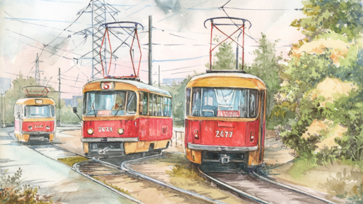 Совершенно случайно в новостной ленте вышел на художника Александра Петрунина. Несколько слов о художнике с его личной страны в соцсети ВКонтатке: "Художник-график, член Профессионального и Евразийского Союза Художников. Работаю в технике - акварель, тушь. Основные темы - транспортное искусство, городские пейзажи, анималистика". Если посмотреть темы, то большинство из них соответствуют нашему каналу. Так что решил познакомить с работами по темам. В этой публикации будут рисунки трамваев, а там и железную дорогу посмотрим и автобусы и городские пейзажи и что-то иное обязательно...