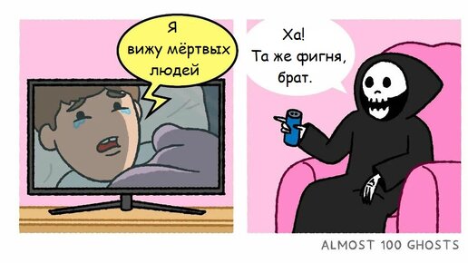 На просторах Интернета появился заброшенный дом, в котором обитает почти 100 призраков. Художник по имени Павел (Павел предпочитает скрывать свою фамилию) недавно начал рисовать серию комиксов под названием «Почти 100 призраков». Она посвящена повседневной жизни призраков, которые вместе живут в одном большом заброшенном поместье. Там не так много живых людей, которых можно напугать, но эти маленькие призраки находят способы напугать друг друга или проводят время, обсуждая загробную жизнь, личную жизнь и нехватку места в доме, несмотря на то, что бестелесны и могут проходить сквозь стены...