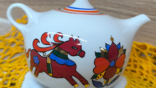 Рада приветствовать, Вас на моем канале. Хочу сегодня поделиться с Вами своей новой - новинкой. Мини чайничком «Красный конь - Красный петух», очень симпатичный и миниатюрный. Яркая роспись со сказочным сюжетом и точной прорисовкой деталей. Он меня просто очаровал и восхитил, своим минимализмом. Роспись чайника выполнена в технике надглазурной живописи надглазурными красками с золотосодержащим препаратом. Автор росписи заслуженным художником РСФСР Воробьевский А.В. Рисунок «Красный петух» создан...