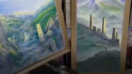 Московский художник пишет горы и древние крепости Ингушетии в необычной технике