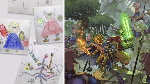 Художник Thomas Romain перерисовывает рисунки своих детей.