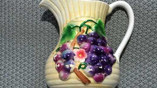 Вдруг вынужденно занялась творчеством, ибо очень тщательно вымыла кувшин, стоявший в кухне)) "Виноград" на его боку срочно пришлось спасать. Всем хозяйкам обидно, но, как ни вымывай периодически всё в кухне, копоть от сгорающего газа постоянно незримо садится на стены, потолок, посуду, полки и шкафы. Я понимала, что нужно кувшин вымыть аккуратно, сильно не тереть, чтобы краска не съехала – Китай же, он и в Африке – Китай. Но, всё же, как я мягенько щёточкой не прошлась по виноградным гроздьям, китайская краска не выдержала моего нежного натиска, увы...