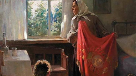 О Леониде Антоновиче Репринцеве мне удалось узнать немного. Этот художник родился в 1917 году и умер то ли в 50-х, то ли в 60-х годах. Писал он в стиле традиционного советского реализма. Есть у него и пейзажи, и портреты, но наибольшую известность принесли ему сюжетные картины. Одна из них - героическая. Называется "Знамя". Но поговорить я хочу о другой очень известной картине Репринцева – "У зеркала". Эта картина, конечно, сатира. Нам интересно сравнить, как относились к женщинам (и их красоте) при Советской власти и сейчас, что осуждалось, а что одобрялось в женщинах...