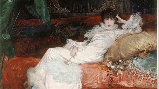 Пожалуй, ни одну актрису художники не изображали так часто, как Сару Бернар. Картин и рисунков, где она фигурирует с разных ракурсов, в различных жизненных ситуациях, в ролях и просто у себя дома на диване, а также ее обычных портретов, довольно много. Это не говоря об афишах (их рисовал, кстати, Альфонс Муха) и карикатурах, посвященных ей. Первый портрет Сары, виденный мной, был вот этот: Еще не зная, кто именно изображен на картине, я была уже впечатлена этой свободно откинувшейся на подушки дамой, в упор глядящей на зрителя...
