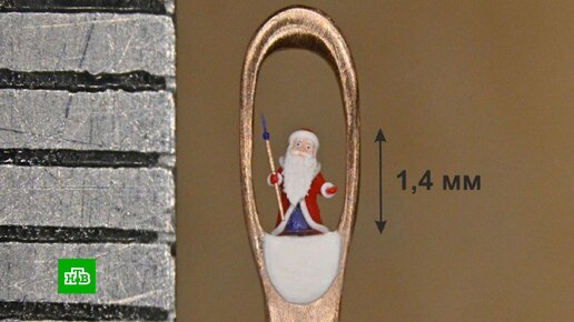 Художник Владимир Анискин из Новосибирска к предстоящему Новому году создал фигурку Деда Мороза размером менее полутора миллиметров. Сказочный персонаж свободно помещается в игольное ушко. Зимний волшебник изображен в классической шубе с посохом, который венчает льдинка. Художник рассказал, что самым сложным было вырезать лицо, над одной только бородой пришлось трудиться несколько дней...