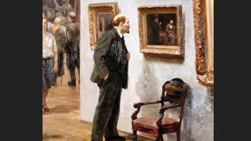 С улыбкой умиления лицезрел картину художника Семяшкина "Ленин в Третьяковской галерее". Тут показано, как Владимир Ильич в пиджаке, измазанном почему-то известкой (прижимался к стене, что ли?!) внимательно смотрит на картину Ильи Репина "Отказ от исповеди". Вождь пролетариата один, то есть, предполагается, что он просто пришел в музей в свободную минутку, чтобы полюбоваться произведениями русских художников, как частное лицо. Впрочем, почему бы и нет?! Искусство принадлежит народу (он же сам и говорил)...