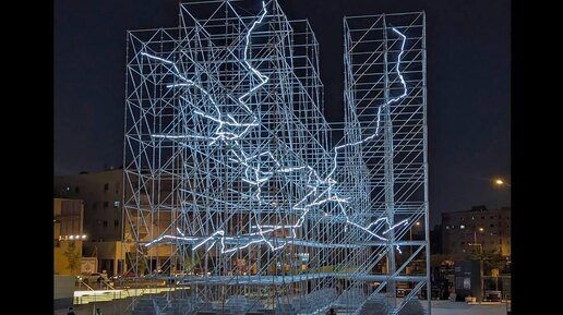 🌟 Это монументальная световая инсталляция высотой 16 метров и общей длиной неона 180 метров, выполненная из строительных лесов.