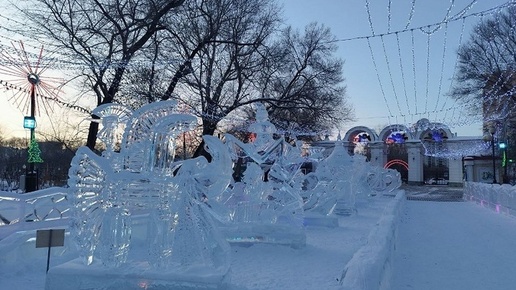 Замерзшая сказка: ледовые фигуры украсили хабаровский парк «Динамо»