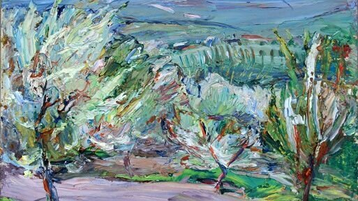 Этюд представляет серию работ художника, выполненных в Хвалынске. Он был подарен автором музею в 1980 году. Тогда же по этому этюду он написал картину «Хвалынск. Яблони цветут», которая находится в коллекции Саратовского художественного музея им. А.Н. Радищева. Этюд подкупает непосредственностью впечатления от цветущих майских хвалынских садов. Владимир Алексеевич любил Хвалынск и неоднократно приезжал в город. В 1974 году здесь, в картинной галерее им. К.С. Петрова-Водкина, экспонировалась первая персональная его выставка, на которой экспонировалось 52 произведения...