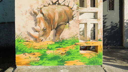 От миньонов до носорога и пейзажей. Чьи работы украшают многие подъезды и дворы? Поговорили с солигорским художником