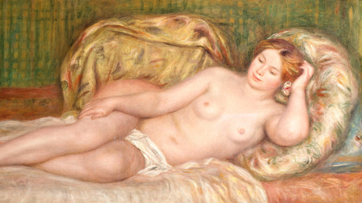 Oбнажённая женская фигура, любимая тема Пьера-Огюста Ренуара (1841–1919) на протяжении всей его карьеры. В 1890-х годах его модели, по словам искусствоведа Гюстава Жеффруа, представляли собой маленьких, инстинктивных существ, таких как дети, или как женщины. Позже его работы стали более насыщенными. Для создания этой картины художник отказался от ярких мазков, ограничив свою палитру гармоничным диапазоном более мягких тонов. Тело женщины залито тёплым светом и покоится на мягких подушках, словно в шкатулке с драгоценностями...