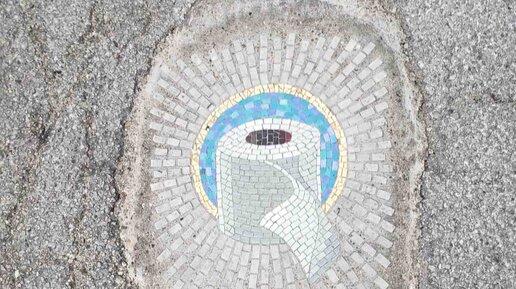 Художник делает мозаики прямо в дорожных колдобинах