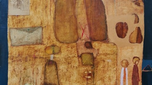Комментирует куратор галереи SMART, искусствовед, Горбунова Мария: «У художника Вадима Бо символы перемещаются из картины в картину. При этом его собственный символический язык открыт для свободной трактовки зрителей. В работе «Долгое путешествие» мы видим символы дорог, домов, писем, путешествующих святых (две фигуры, облаченные в коричневое и белое, близкие к иконописным образам). Картина выполнена с использованием различных фактур, напоминающих фрески, иконы, дерево. В левом верхнем углу мы видим старинную фотографию как символ обращения к предкам, путешествие в прошлое...