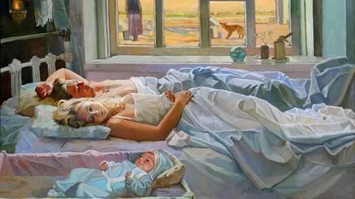 На этой картине мы видим молодую семью, которая мирно спит ранним утром. Вот только утро оказалось совсем не добрым: за большим панорамным окном мы видим низко летящие вражеские самолёты, которые готовы стереть деревню с лица земли. Эту картину написал современный художник Валентин Папко. Называется она «Даже не снилось. Утро 22 июня 1941». На первый взгляд полотно призвано рассказать об ужасах войны и нести историко-художественную ценность, но на самом деле это произведение изобилует ляпами, которых просто не могло быть в то время...