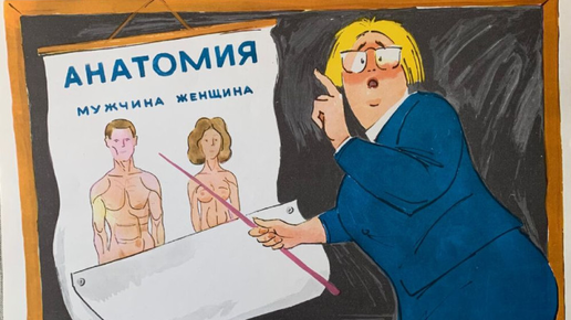 Владимир Канивец (1957 г.р). «— А дальше вам знать не нужно!» Стихи Веры Капраловой: А почему родятся человеки, Узнают наши дети в дискотеке. В СССР нередко критиковали ханжеское отношение к «вопросам пола», как тогда выражались, выступали за «половое просвещение молодёжи», против ханжества. Из художников-сатириков к этой теме особенно часто обращался Лев Самойлов (1918—1988). 1962. Лев Самойлов. «— Завтра десятиклассники идут в театр. Примем меры предосторожности!». «Наши педагоги стараются не говорить со своими питомцами о любви...